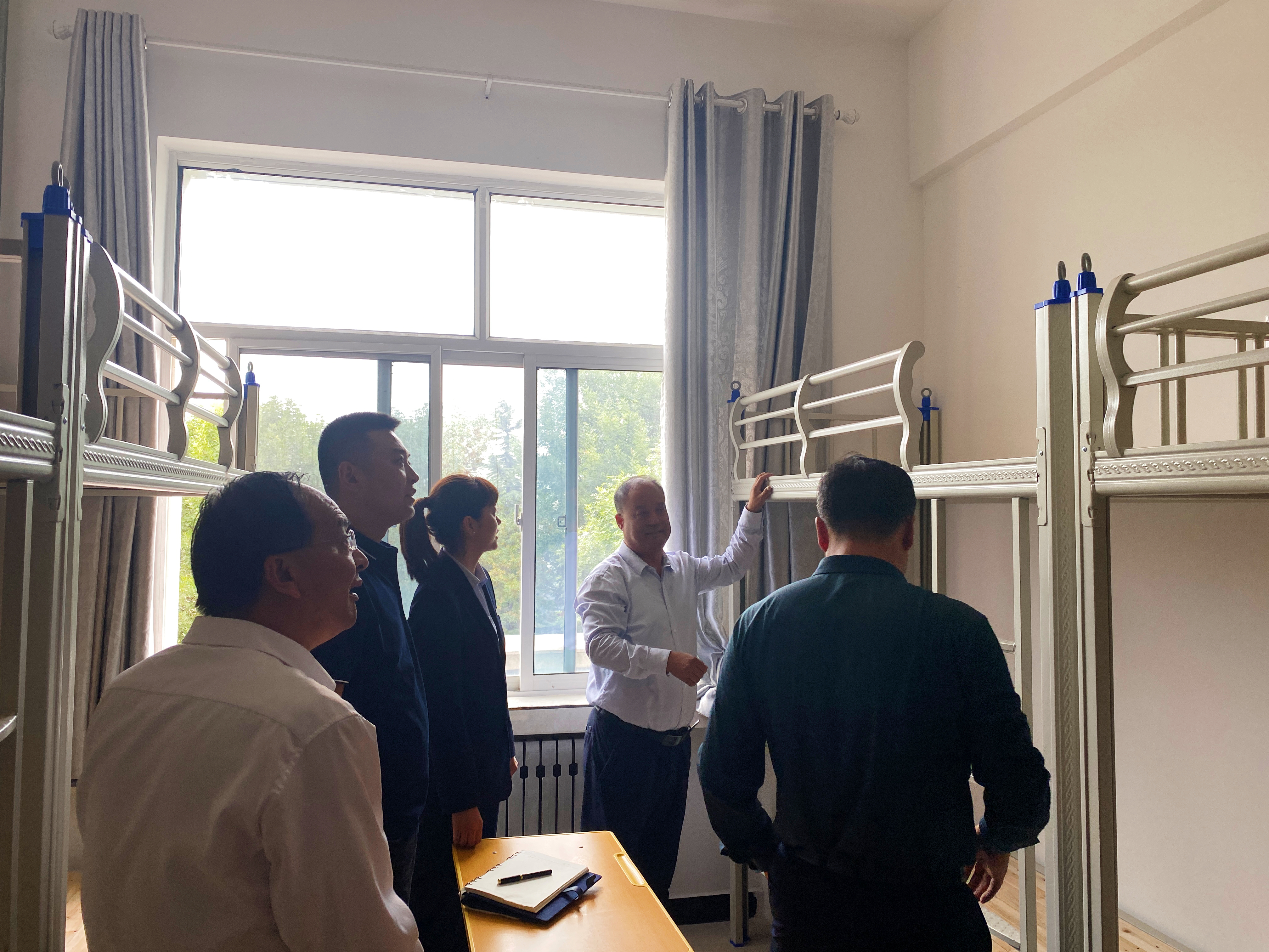9月10日下午4时,党委书记张武德,党委副书记、院长白旭宁带队现场督查迎新准备及后勤服务保障工作,学院班子成员及相关负责人陪同检查。