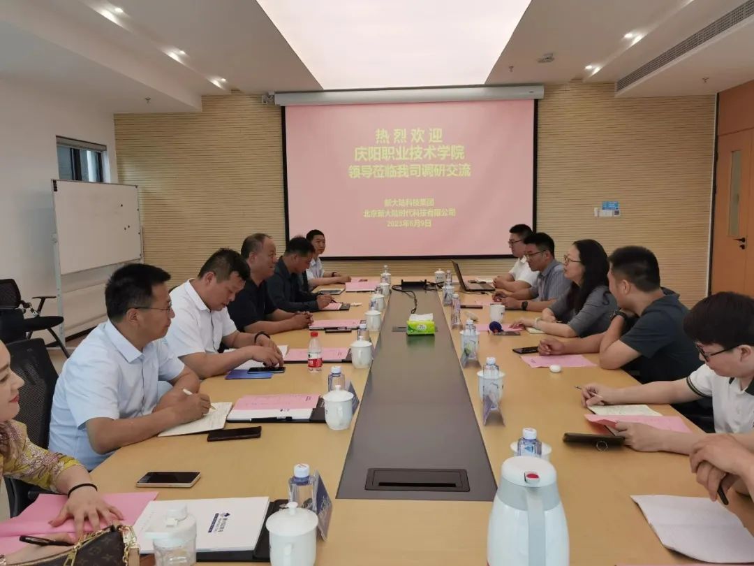 座谈会上与会人员一同观看了学院招生宣传片,校企双方分别介绍了学院基本情况、企业发展概况,就全国一体化算力网络甘肃枢纽节点庆阳数据中心集群项目、招商引资优惠政策、校企合作产教融合以及新大陆物联网产业学院建设发展、“东数西算”工程人才培养、促进学生岗位实习就业等进行了深入交流洽谈。