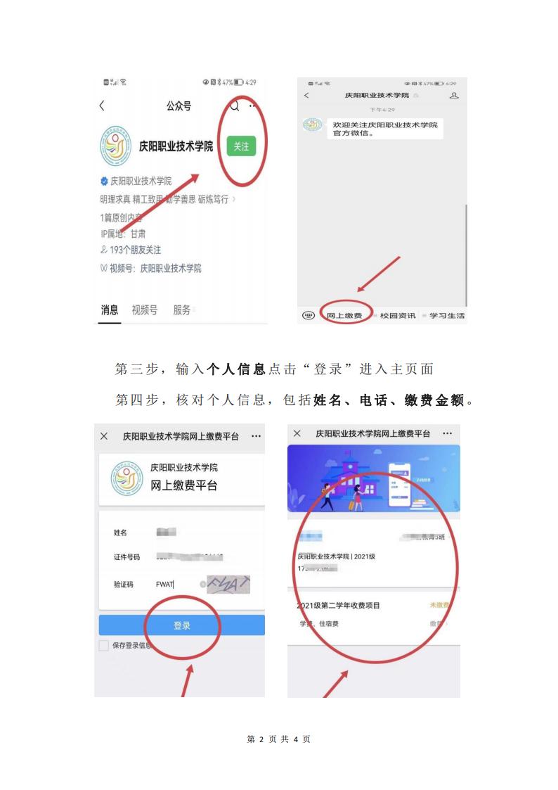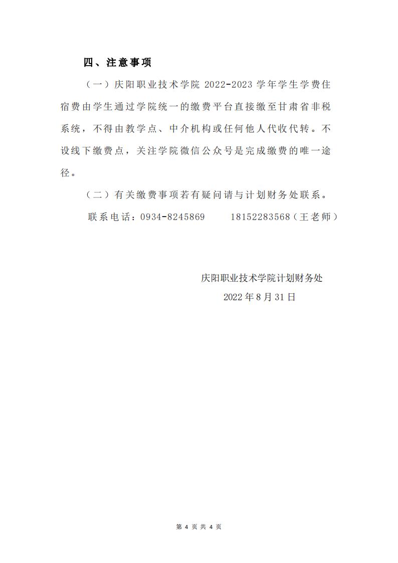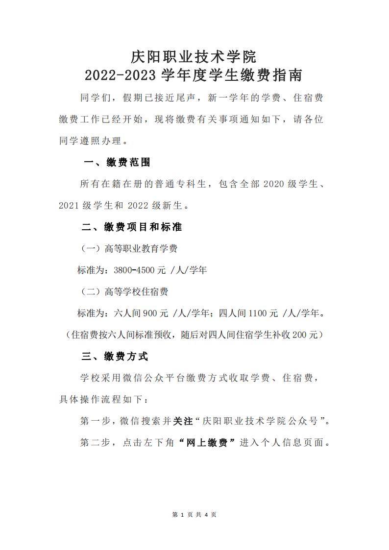 庆阳职业技术学院 2022-2023学年度学生缴费指南