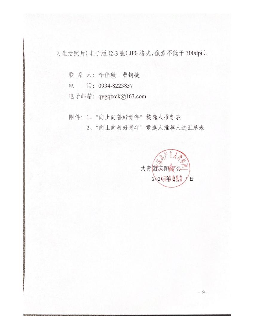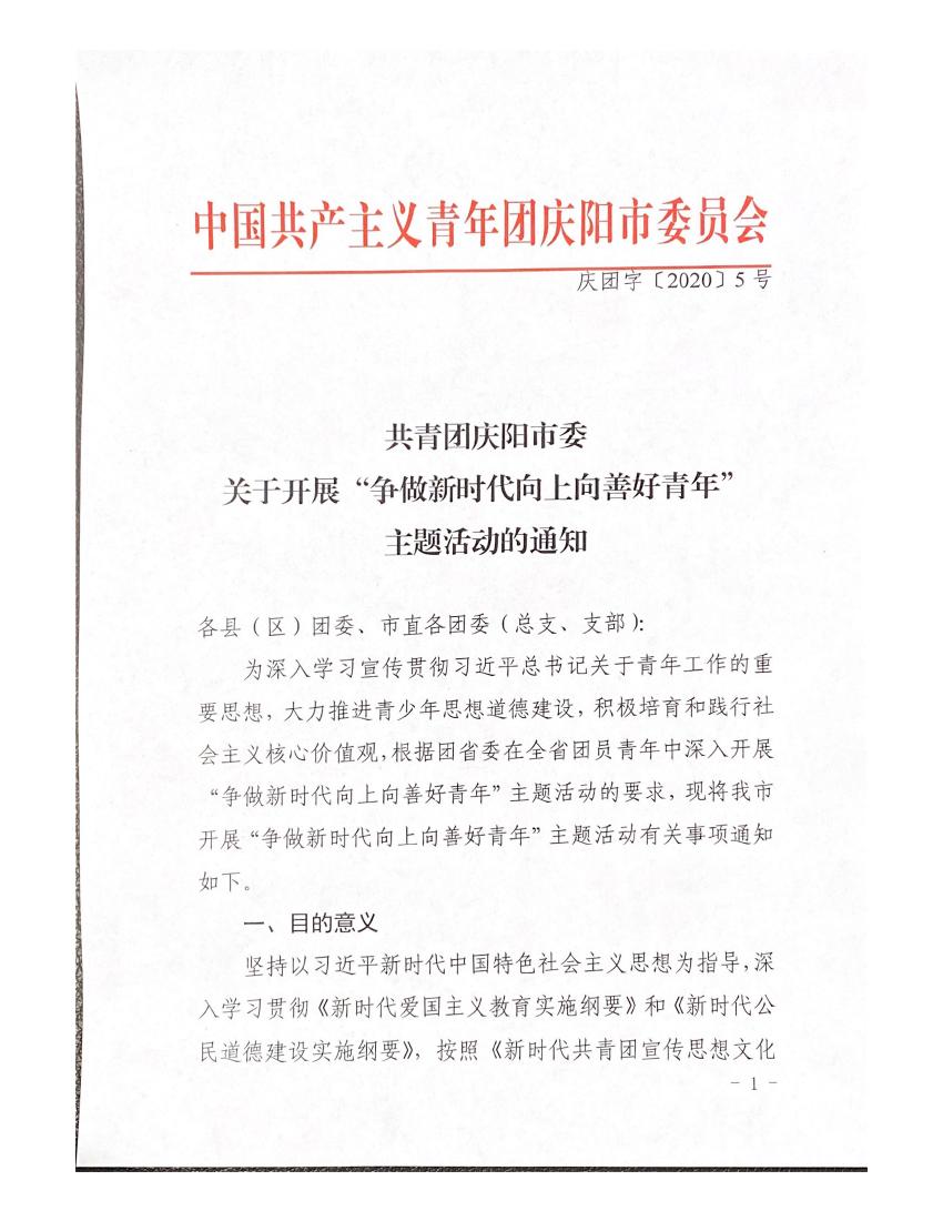 共青团庆阳市委关于开展“争做新时代向上向善好青年”主题活动的通知