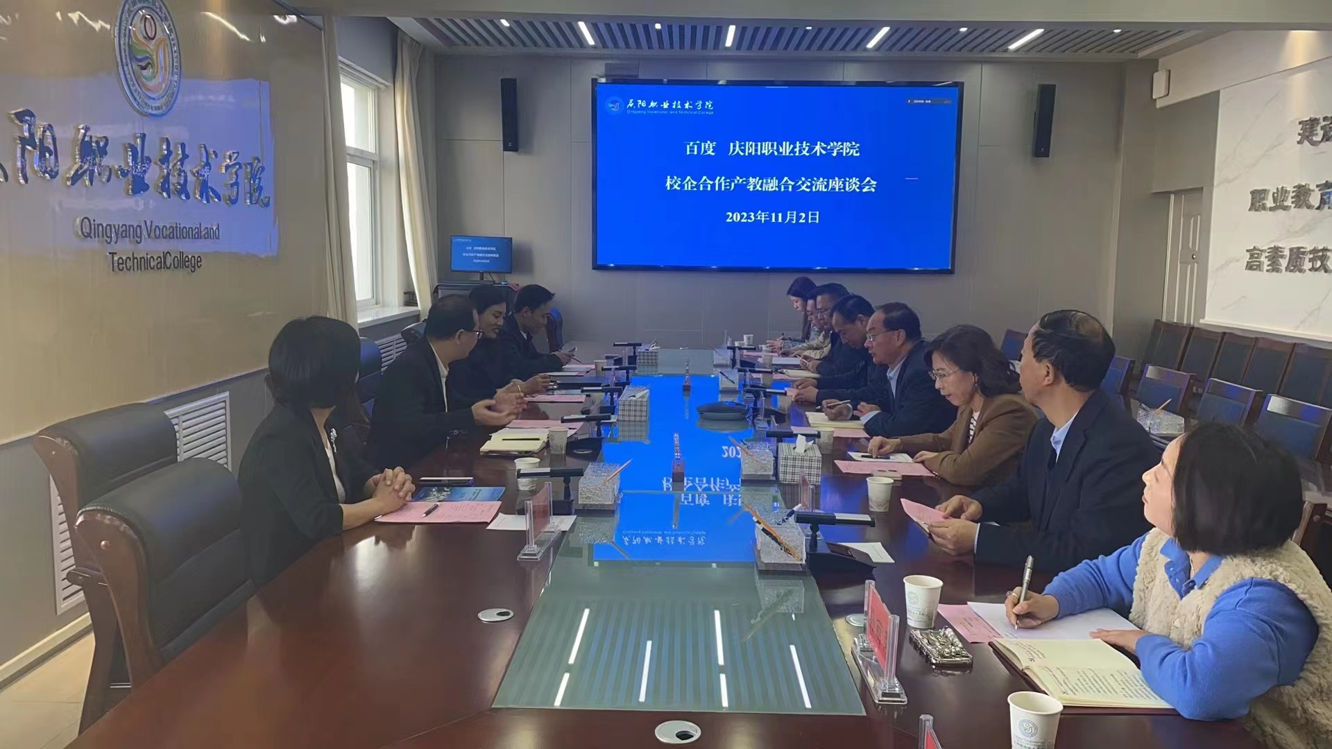 11月3日上午,百度智能云甘肃省总经理李广华、百度智能云西北区营销总监贺莉、百度生态教育行业接口人陈丽、百度庆阳合资公司副总刘欣延等一行来我院洽谈共建产业学院合作事宜。党委副书记、院长白旭宁,党委委员、副院长王婕,...