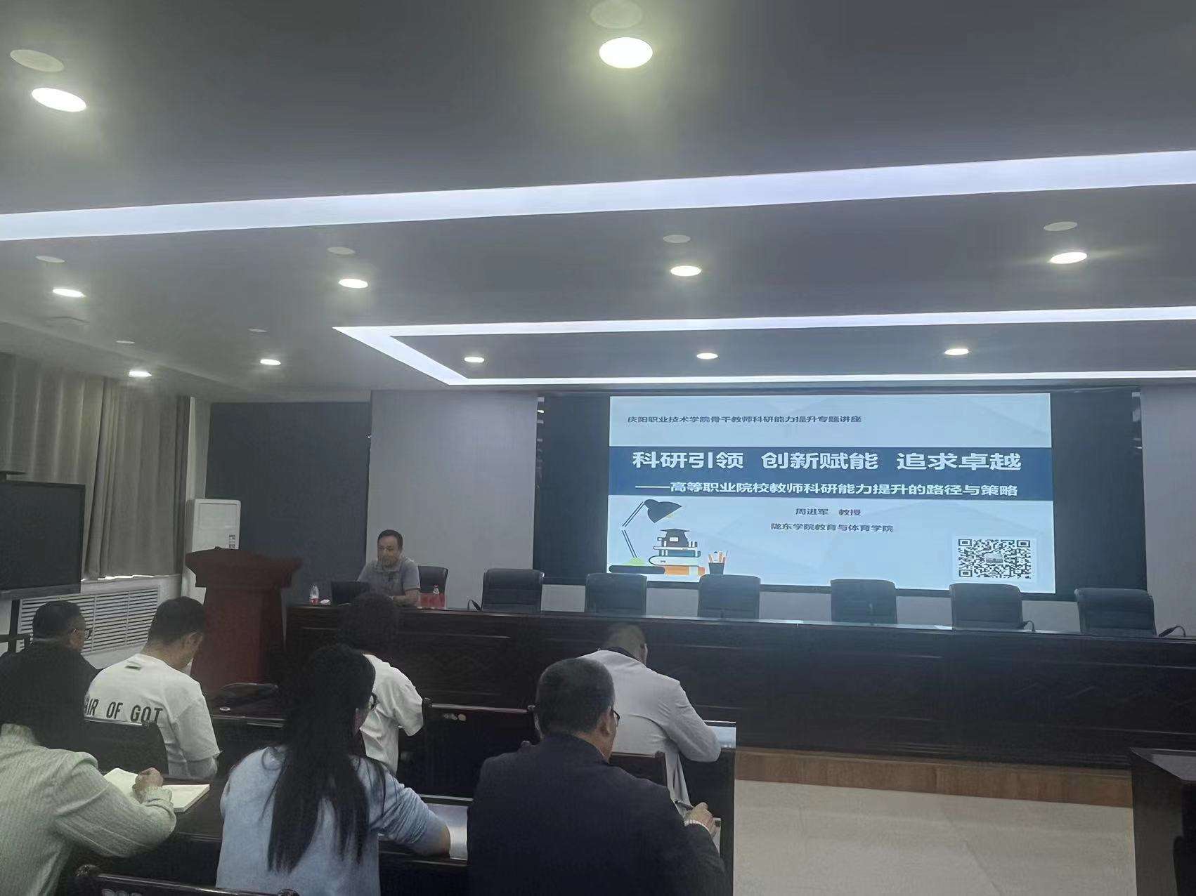 5月14日,学院邀请陇东学院周进军教授开展了题为“科研引领 创新赋能 追求卓越—高等职业院校教师科研能力提升的路径与策略”的专题讲座。各教学单位分管教学科研副主任、各教研室主任、骨干教师等参加培训。 周进军...