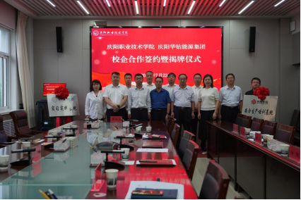 7月23日上午,庆阳职业技术学院与庆阳华钻能源集团校企合作签约暨揭牌仪式在学院树人楼隆重举行。庆阳华钻能源集团有限责任公司董事长李岗、总经理袁佳,学院党委书记张建军,党委副书记、院长白旭宁和双方在家班子成员及党政办公室、教务处、招生就业处、成人教育培训处、智能工程系、能源化工系主要负责人参加。仪式由党委委员、副院长王婕主持。 仪式上,白旭宁、袁佳分别介绍了学院和华钻集团概况,副院长王志强、华钻集团副总经理白剑代表校企双方签订校企合作协议,...