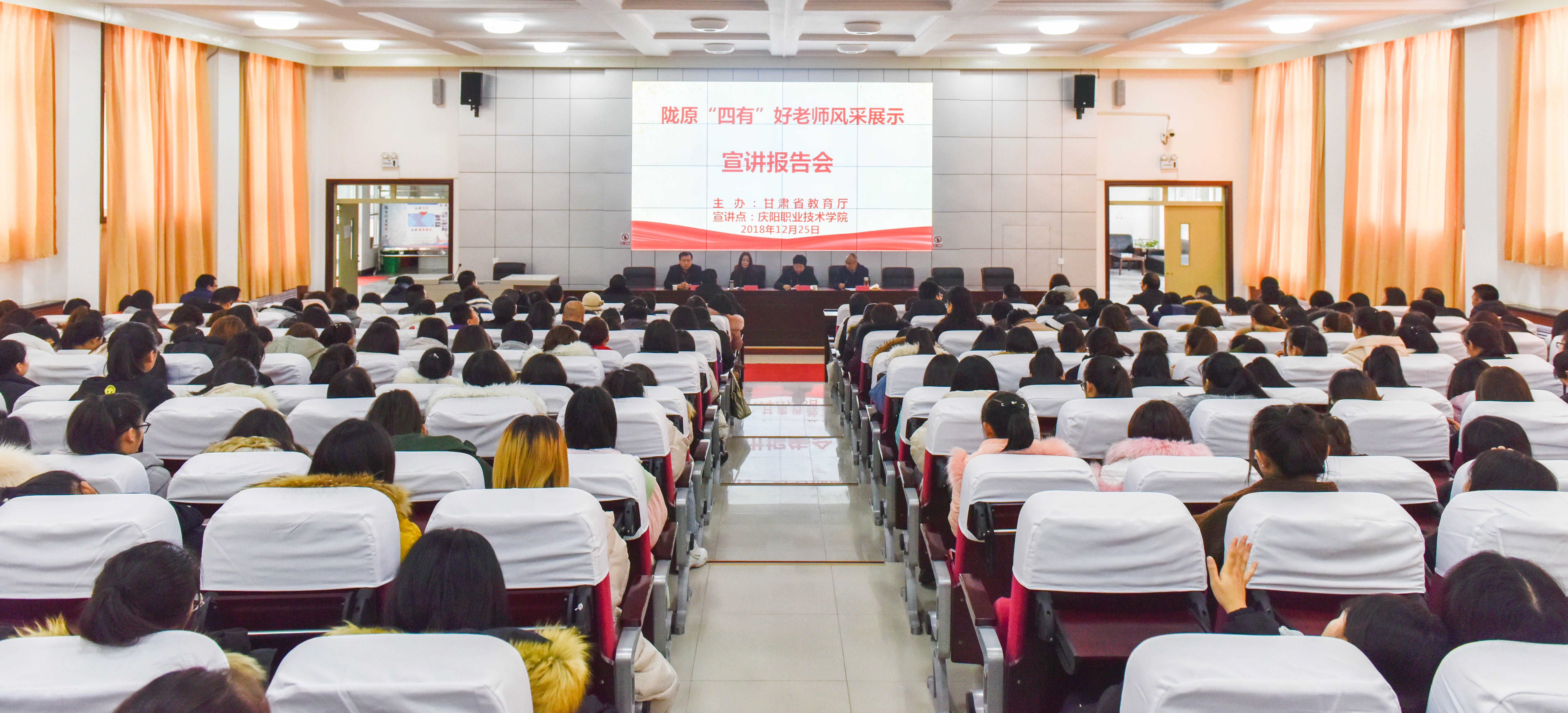 为充分发挥名优教师的辐射引领和示范带动作用,省教育厅从9月1日开始在全省各地组织开展陇原“四有”好老师风采展示系列宣讲活动。12月25日,陇原“四有”好老师宣讲团甘肃财贸职业技术学院党委书记刘忠一行3人莅临庆阳职业技术学院开展宣讲活动。...