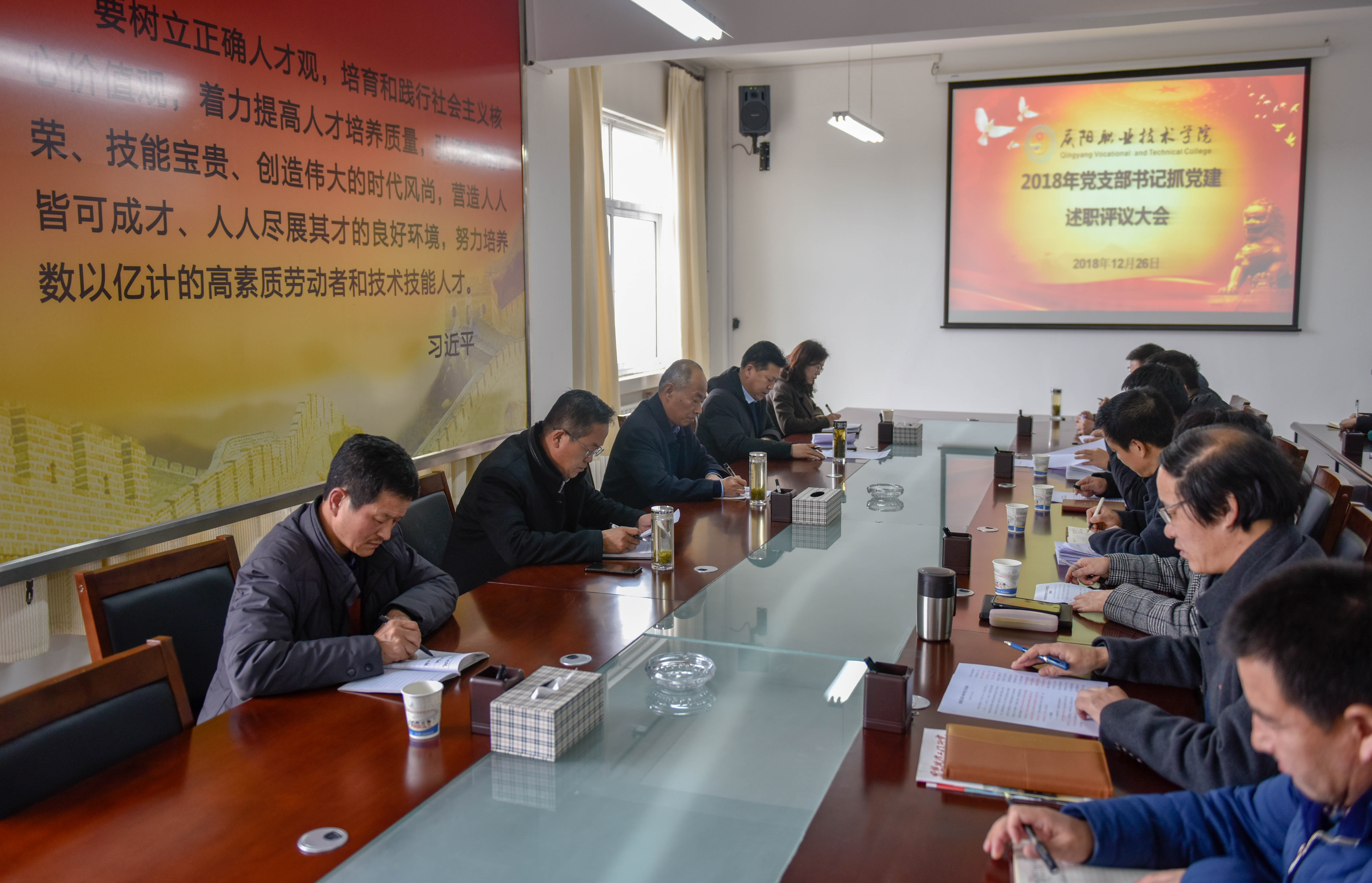 12月26日,学院召开2018年度党支部书记抓党建述职评议大会,学院在家领导、各党支部书记、系(部)主任、党员代表31人参加,副院长曹强主持会议。 会上,思政部党支部、艺术系党支部、...