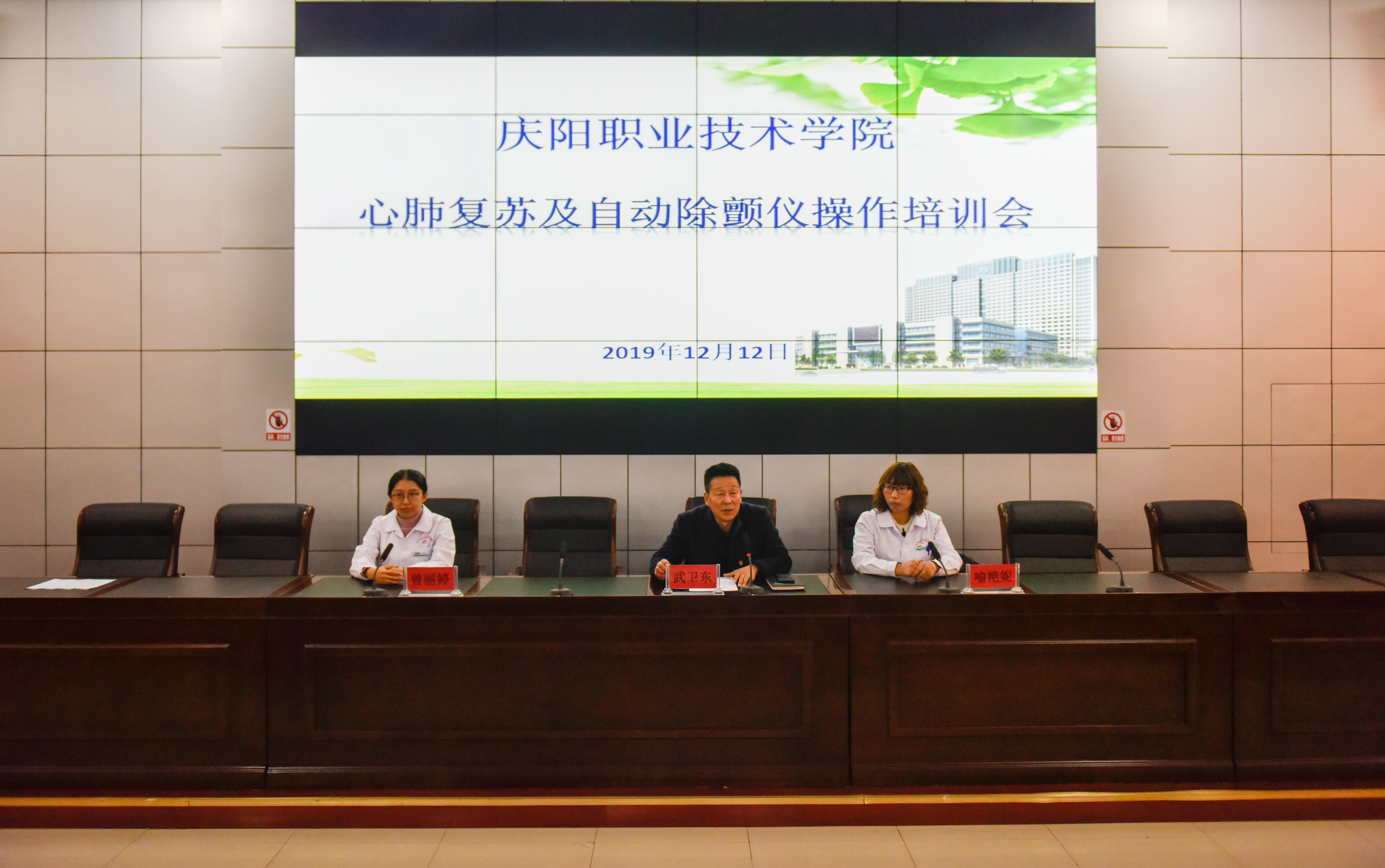 为了进一步帮助广大师生掌握突发心源性猝死情况下的现场救护技能,正确使用体外自动除颤仪(AED),12月12日下午,学院邀请西峰区后官寨卫生院全科医师曾丽婷、喻艳妮到学院进行心肺复苏及自动除颤仪操作培训。培训会由副院长武卫东主持。...